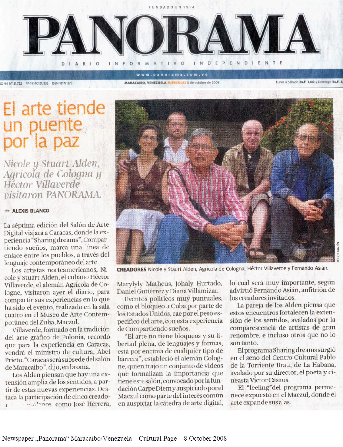 The multimedia artists from Germany, Agrícola de Cologne, Cuba, Héctor Villaverde, and from the USA, Stuart and Nicole Alden, are present at the event, giving talks on Digital Image and showing their work in new media in art. Those interested in obtaining a certificate of attendance at the conferences, can register at the entrance of the Hall.